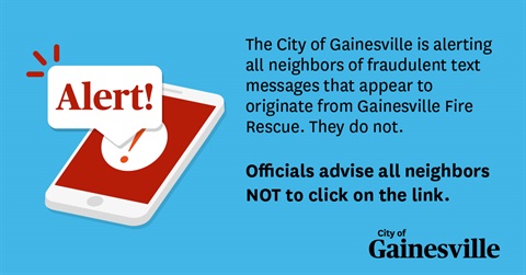 The City of Gainesville is alerting all neighbors of fraudulent text messages that appear to originate from Gainesville Fire Rescue. They do not.